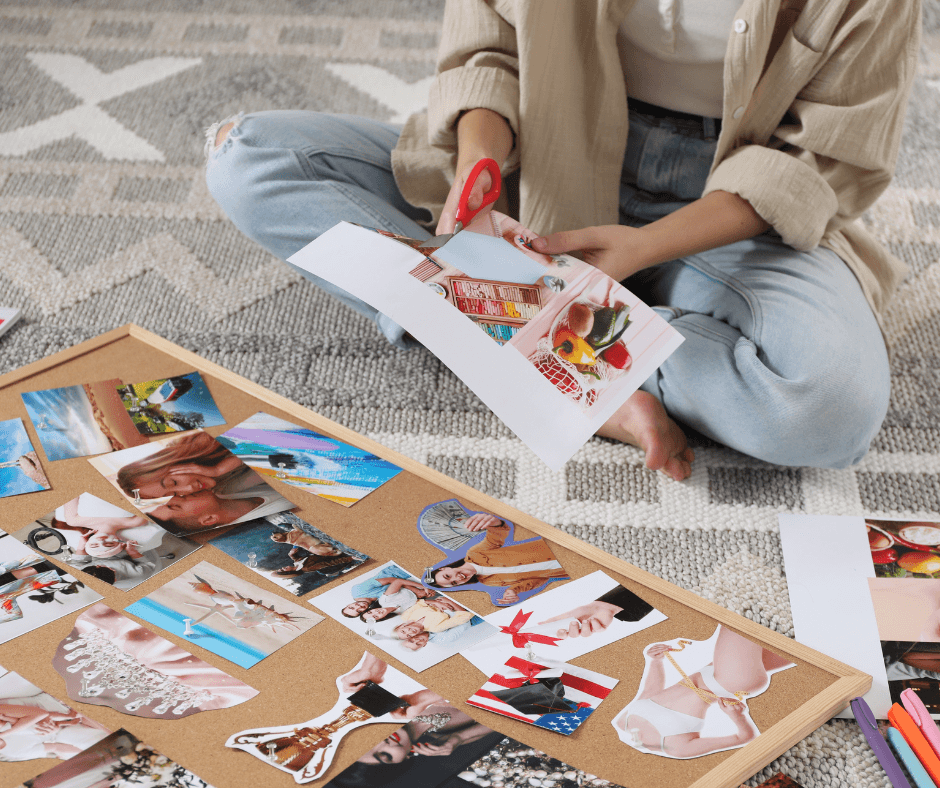 80冊以上の雑誌から、心ときめく写真を選んでボードに貼っていきます。
